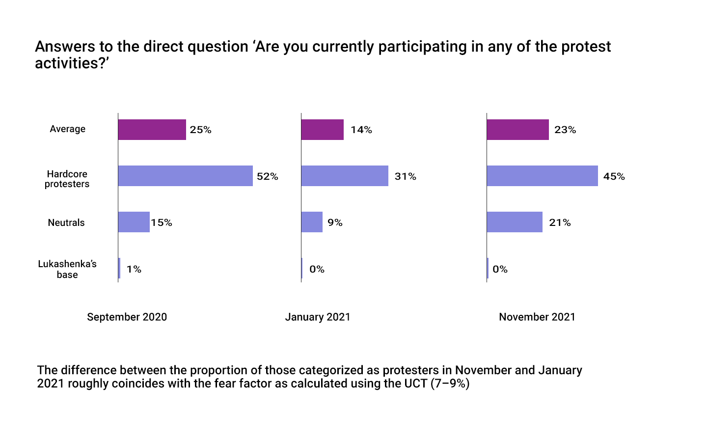 About nine per cent of respondents stop doing the survey when they reach the question at the very beginning of the questionnaire: ‘Which position is closer to you?’ (Support for the protests, neutral, support for the current government). Some of the responses from respondents also speak of concern: